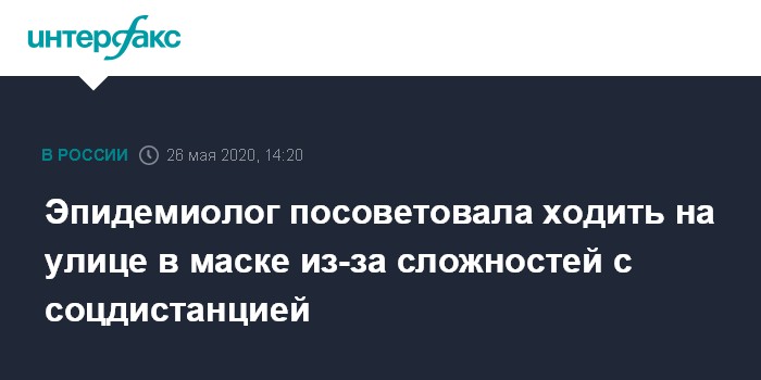 Москва. 26 мая. INTERFAX.RU - Снимать маску и перчатки на улице не рекомендуется, потому что на тротуарах сложно соблюдать социальную дистанцию, заявила "Интерфаксу" руководитель отдела клинических исследований Центрального НИИ эпидемиологии Роспотребнадзора Татьяна Руженцова.