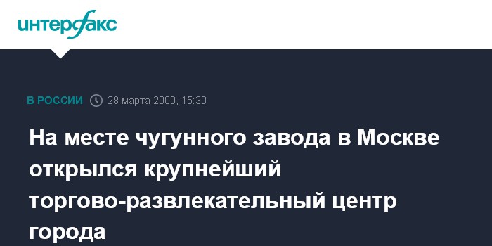 На месте чугунного завода в Москве открылся крупнейший торгово-развлекательный центр города