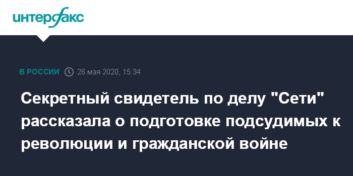 Москва. 26 мая. INTERFAX.RU - Участники петербургской ячейки организации "Сеть" (признана террористической и запрещена в России) обсуждали смену политической власти в России, готовились к революции и гражданской войне, заявила на суде секретный свидетель.