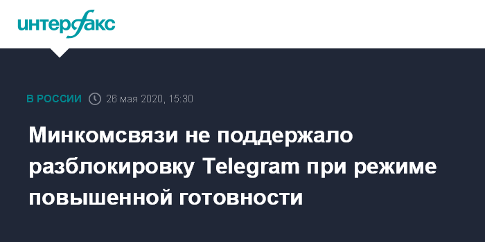 Москва. 26 мая. INTERFAX.RU - Минкомсвязи России не поддержало законодательную инициативу депутатов "Справедливой России" о разблокировке мессенджера Telegram во время чрезвычайных ситуаций и периода повышенной готовности.