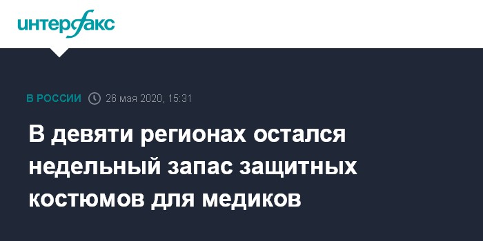 "Хотела дать вам информацию об обеспеченности защитными костюмами - это самое дорогостоящее. В некоторых регионах остался только недельный запас для работы медиков с тем, чтобы были защитные костюмы, это, например, Костромская, Московская, Архангельская, Свердловская, Новосибирская, Магаданская области, Марий Эл, Татарстан, Приморский край", - сказала Серегина на заседании комитета Госдумы по здравоохранению.
