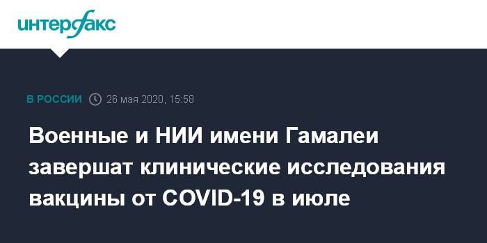 Военные и НИИ имени Гамалеи завершат клинические исследования вакцины от COVID-19 в июле