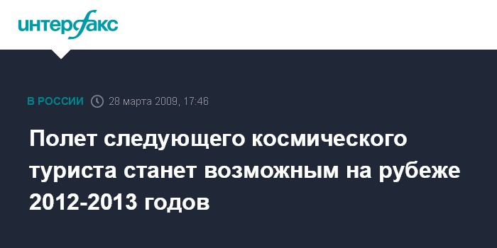Москва. 28 марта. INTERFAX.RU - Руководитель пилотируемых программ Роскосмоса Алексей Краснов сообщил в субботу журналистам, что следующий космический турист может отправиться на российском корабле "Союз" не раньше 2012-2013 годов.