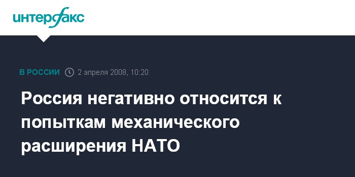 Москва. 2 апреля. INTERFAX.RU - В России негативно относятся к планам по присоединению к НАТО Грузии, Украины и Балканских стран и вынуждены резко реагировать на подобные инициативы, заявил директор Департамента общеевропейского сотрудничества МИД России Сергей Рябков.