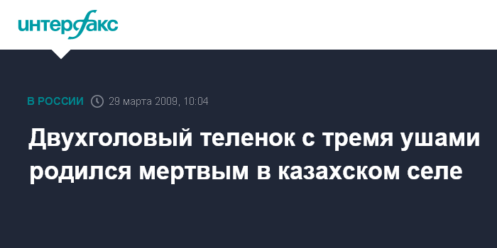 Актобе. 29 марта. INTERFAX.RU - В селе Уил Актюбинской области Казахстана мертвым родился двуглавый теленок.