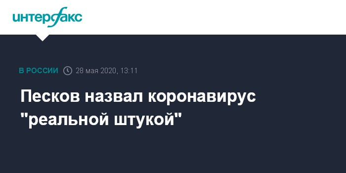 Москва. 28 мая. INTERFAX.RU - Выдумкой коронавирус считают те, кто не хочет посмотреть вокруг или внимательно изучить информацию о пандемии, сказал переболевший COVID-19 пресс-секретарь президента Дмитрий Песков. Ссылаясь на собственный опыт, он отметил, что "это штука реальная".