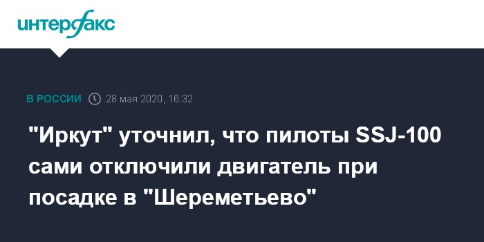 "Иркут" уточнил, что пилоты SSJ-100 сами отключили двигатель при посадке в "Шереметьево"