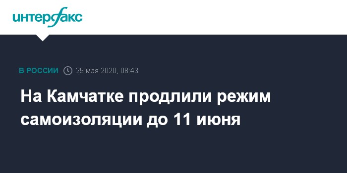 Москва. 29 мая. INTERFAX.RU - Режим самоизоляции из-за COVID-19 продлен в Камчатском крае как минимум до 11 июня, сообщил в пятницу журналистам врио губернатора края Владимир Солодов.