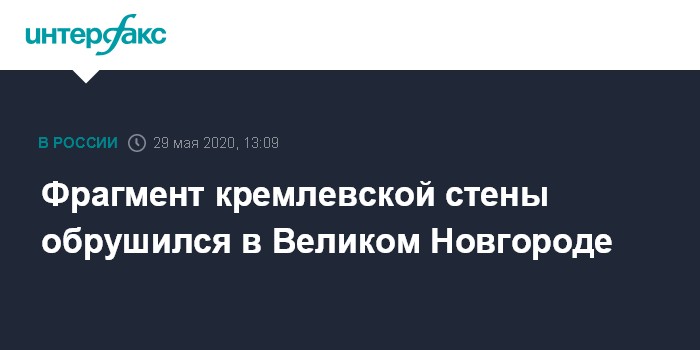 Москва. 29 мая. INTERFAX.RU - Часть кремлевской стены обрушилась в Великом Новгороде, сообщили "Интерфаксу" в Новгородском государственном музее-заповеднике (ГМЗ).