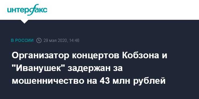 Организатор концертов Кобзона и "Иванушек" задержан за мошенничество на 43 млн рублей