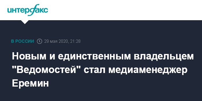 Новым и единственным владельцем "Ведомостей" стал медиаменеджер Еремин
