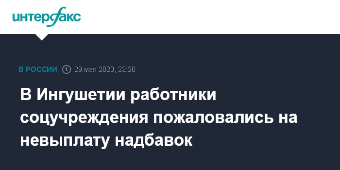 Москва. 29 мая. INTERFAX.RU - Сотрудники Пседахского психоневрологического дома-интерната Ингушетии пожаловались на то, что не получили доплаты за повышенную нагрузку в условиях сложной эпидобстановки по COVID-19 в регионе.