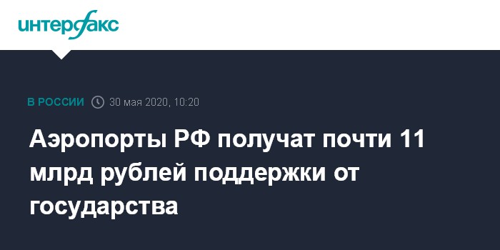 Аэропорты РФ получат почти 11 млрд рублей поддержки от государства