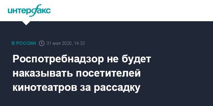 Ранее Роспотребнадзор опубликовал рекомендации для кинотеатров и кинозалов в условиях коронавируса. Решение об открытии кинотеатров должны будут принимать власти регионов по рекомендации санитарных врачей, исходя из эпидемической ситуации в субъекте. Зрителям рекомендовано носить маски и воздержаться от похода в кино при наличии симптомов ОРВИ.