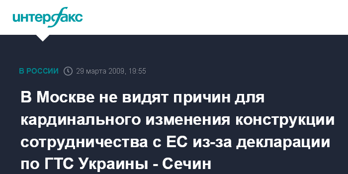 В Москве не видят причин для кардинального изменения конструкции сотрудничества с ЕС из-за декларации по ГТС Украины - Сечин