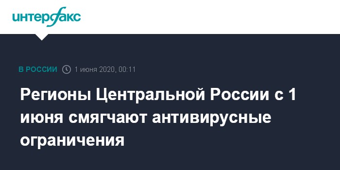 Москва. 1 июня. INTERFAX.RU - Власти регионов Центральной России с 1 июня начнут ослаблять ограничительные меры, ранее введенные из-за неблагоприятной эпидемиологической ситуации в связи с распространением коронавируса.