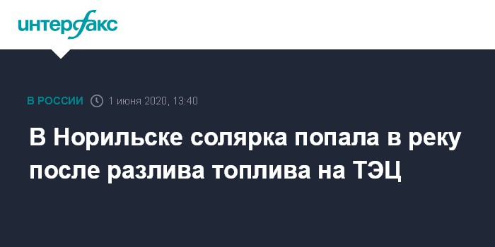 Ранее сообщалось, что 29 мая произошла разгерметизация топливного бака и возгорание нефтепродуктов на ТЭЦ-3 АО "Норильско-Таймырская энергетическая компания" (НТЭК, входит в "Норильский никель"), которая обеспечивает энергоснабжение Норильского промышленного района Норильска.