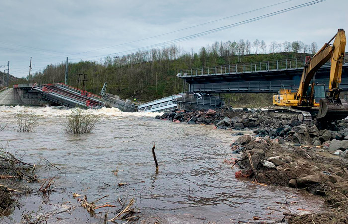 Ранее сообщалось, что река Кола вышла из берегов и сместила опоры железнодорожного моста. В результате грузовые и пассажирские перевозки на перегоне Выходной - Кола от станции Выходной до станции Мурманск приостановлены, проводятся восстановительные работы.