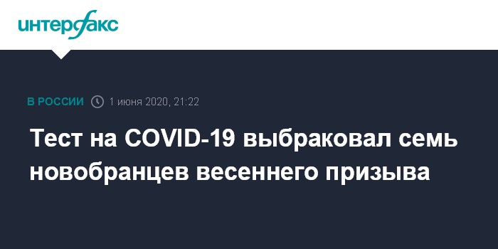 Москва. 1 июня. INTERFAX.RU - Семь россиян не попали на военную службу в рамках весеннего призыва из-за обнаружения у них коронавируса, сообщает Минобороны России.
