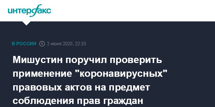 Москва. 2 июня. INTERFAX.RU - Нормативные акты, принятые в период эпидемии коронавируса, будут проанализированы с участием юристов на предмет соблюдения прав и интересов граждан.