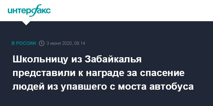 Школьницу из Забайкалья представили к награде за спасение людей из упавшего с моста автобуса