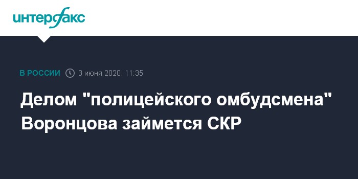 Москва. 3 июня. INTERFAX.RU - Прокуратура Москвы передала дело основателя проекта "Омбудсмен полиции" Владимира Воронцова из МВД в СКР, сообщила "Интерфаксу" начальник пресс-службы столичной прокуратуры Людмила Нефедова в ответ на запрос агентства.