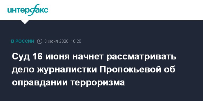 Суд 16 июня начнет рассматривать дело журналистки Пропокьевой об оправдании терроризма
