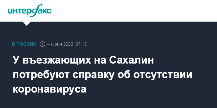 Москва. 4 июня. INTERFAX.RU - Правительство Сахалинской области с 11 июня ужесточает требования к въезжающим в регион - наличие отрицательного теста на коронавирус становится обязательным для всех.