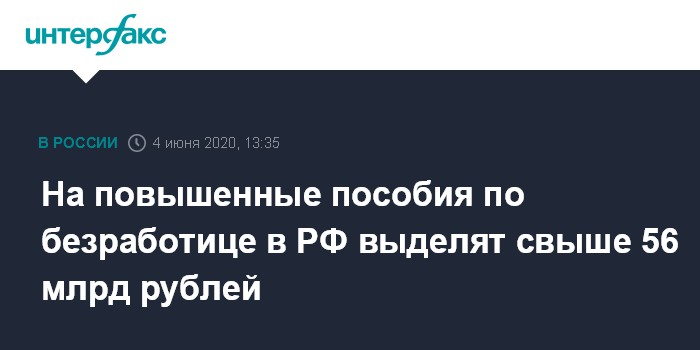 Москва. 4 июня. INTERFAX.RU - В России на конец мая зарегистрировано порядка 1 млн 900 безработных, на выплату им повышенных пособий правительство выделяет 56,2 млрд рублей, сообщил премьер-министр РФ Михаил Мишустин.