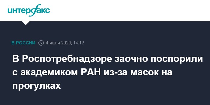 В Роспотребнадзоре заочно поспорили с академиком РАН из-за масок на прогулках