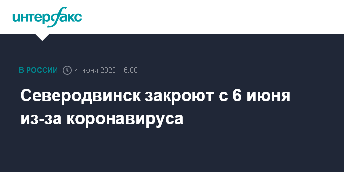 Северодвинск закроют с 6 июня из-за коронавируса