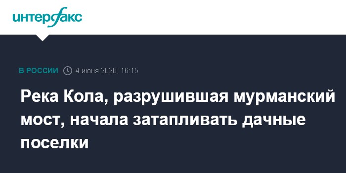 1 июня упал мост между станциями Выходной и Кола под Мурманском. По факту обрушения пролета железнодорожного моста мурманский следственный отдел на транспорте расследует уголовное дело по статье 263 УК РФ (нарушение правил безопасности движения и эксплуатации железнодорожного транспорта).