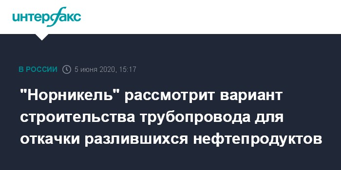 "Норникель" рассмотрит вариант строительства трубопровода для откачки разлившихся нефтепродуктов