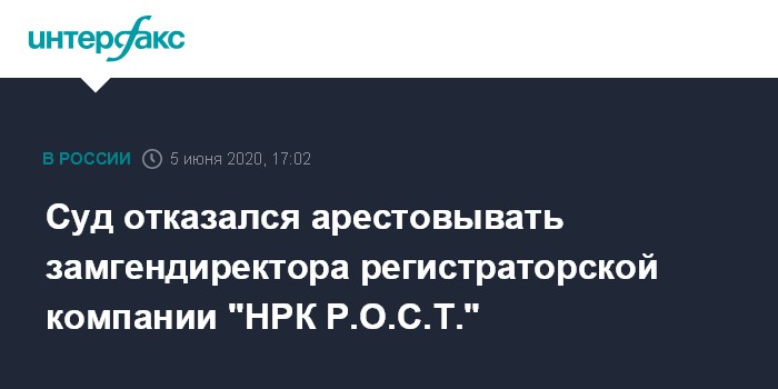 Суд отказался арестовывать замгендиректора регистраторской компании "НРК Р.О.С.Т."