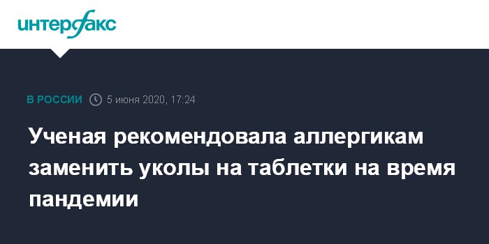Москва. 5 июня. INTERFAX.RU - Медики советуют при проведении иммунотерапии аллергии заменить уколы на таблетки, минимизировав таким образом посещение больниц, сообщила на конференции начальник отдела аллергических и аутоиммунных заболеваний в педиатрии Ростовского медуниверситета (РостГМУ) Элла Чурюкина.