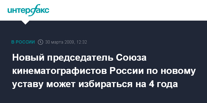 Москва. 30 марта. INTERFAX.RU - В проекте нового устава Союза кинематографистов, который будет рассматриваться на съезде организации в понедельник, предлагается увеличить срок полномочий председателя Союза до четырех лет.
