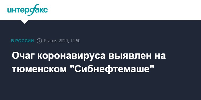Москва. 8 июня. INTERFAX.RU - В Тюмени в компании "Сибнефтемаш" (входит в "Группу ГМС") выявили очаг коронавирусной инфекции, сообщил начальник отдела эпидемиологического надзора регионального управления Роспотребнадзора Александр Летюшев.
