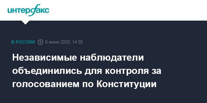 Москва. 8 июня. INTERFAX.RU - Несколько независимых от государства наблюдательских организаций объявили, что создают альянс для наблюдения за общероссийским голосованием по поправкам в Конституцию. Об этом сообщила пресс-служба "Голоса".