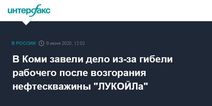 Москва. 9 июня. INTERFAX.RU - Рабочий, пострадавший при возгорании в апреле на производственном объекте ООО "ЛУКОЙЛ-Коми" в Усинском районе, скончался, возбуждено уголовное дело.