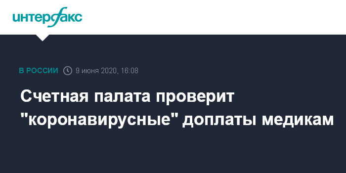 Москва. 9 июня. INTERFAX.RU - Счетная палата по поручению Госдумы проверит организацию стимулирующих выплат медикам, работающим с больными коронавирусом, а также другие меры, связанные с борьбой с COVID-19, сообщил председатель контрольного ведомства Алексей Кудрин.