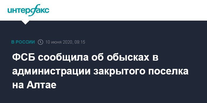 Москва. 10 июня. INTERFAX.RU - В администрации ЗАТО "Сибирский" в Алтайском крае начались обыски, сообщили в пресс-центре регионального управления ФСБ. Причину оперативно-розыскных мероприятий там пока называть не стали.