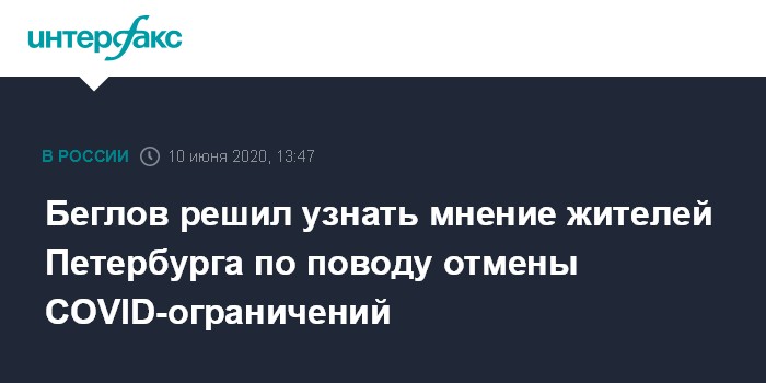 Москва. 10 июня. INTERFAX.RU - Губернатор Санкт-Петербурга Александр Беглов решил узнать мнение жителей города, какие ограничения по коронавирусу необходимо отменить в первую очередь.