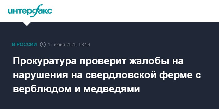 Прокуратура проверит жалобы на нарушения на свердловской ферме с верблюдом и медведями