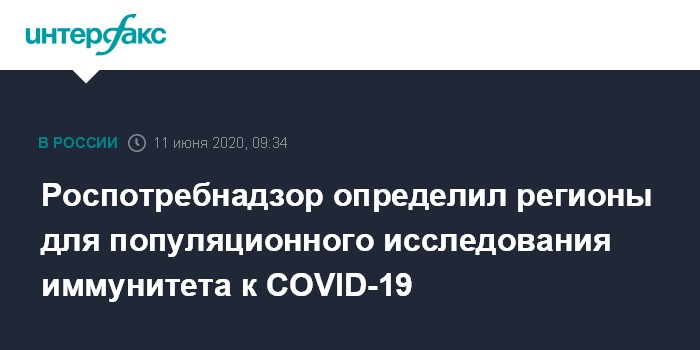 Москва. 11 июня. INTERFAX.RU - Проведение оценки популяционного иммунитета к вирусу SARS CoV-2 запланировано на территории трех пилотных субъектов РФ, сообщает Роспотребнадзор.