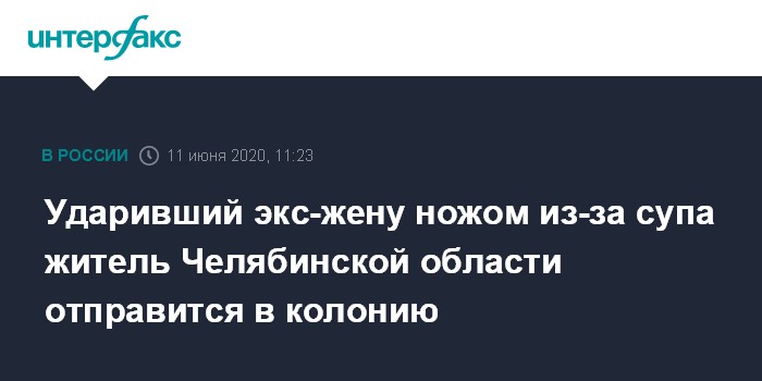 Москва. 11 июня. INTERFAX.RU - Саткинский городской суд приговорил к четырем с половиной годам колонии местного жителя, ударившего ножом бывшую жену за съеденный суп, сообщает пресс-служба прокуратуры Челябинской области в четверг.