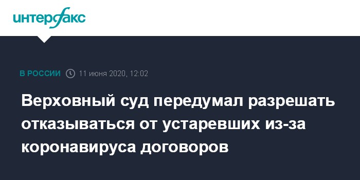 Верховный суд передумал разрешать отказываться от устаревших из-за коронавируса договоров