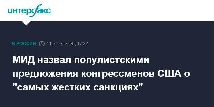 МИД назвал популистскими предложения конгрессменов США о "самых жестких санкциях"