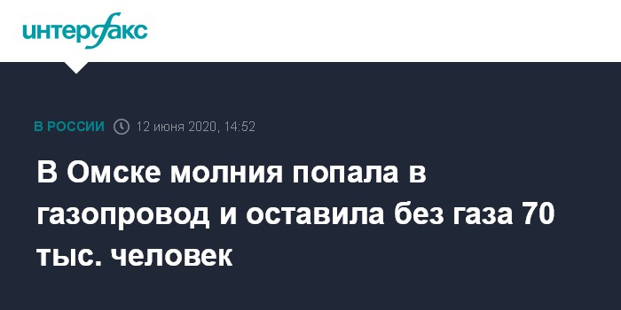 Москва. 12 июня. INTERFAX.RU - Возгорание на распределительном газопроводе в Кировском районе Омска произошло во время грозы днем в пятницу, сообщает Ситуационно-аналитический центр Минэнерго.