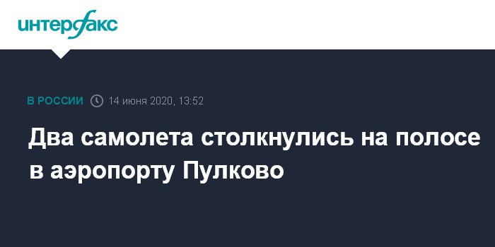 Москва. 14 июня. INTERFAX.RU - Два самолета столкнулись на полосе в аэропорту Пулково Санкт-Петербурга, сообщил "Интерфаксу" в воскресенье информированный источник.