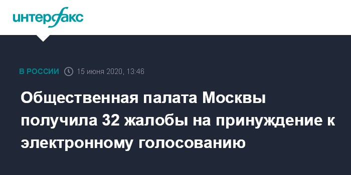 Москва. 15 июня. INTERFAX.RU - Общественная палата Москвы получила 32 жалобы на принуждение к электронному голосованию по поправкам в Конституцию и на настойчивое информирование о возможности проголосовать через интернет, сообщил член палаты Илья Массух. Он возглавляет городской общественный штаб по наблюдению за общероссийским голосованием.